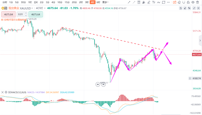 沈青和 :沈青和:4.1黄金上午短空思路正确,午后反手做多看上行