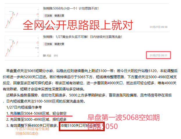 张婉雅:黄金5090公开短空5060逢低减仓!周内开门红!!信手拈来再捡钱!