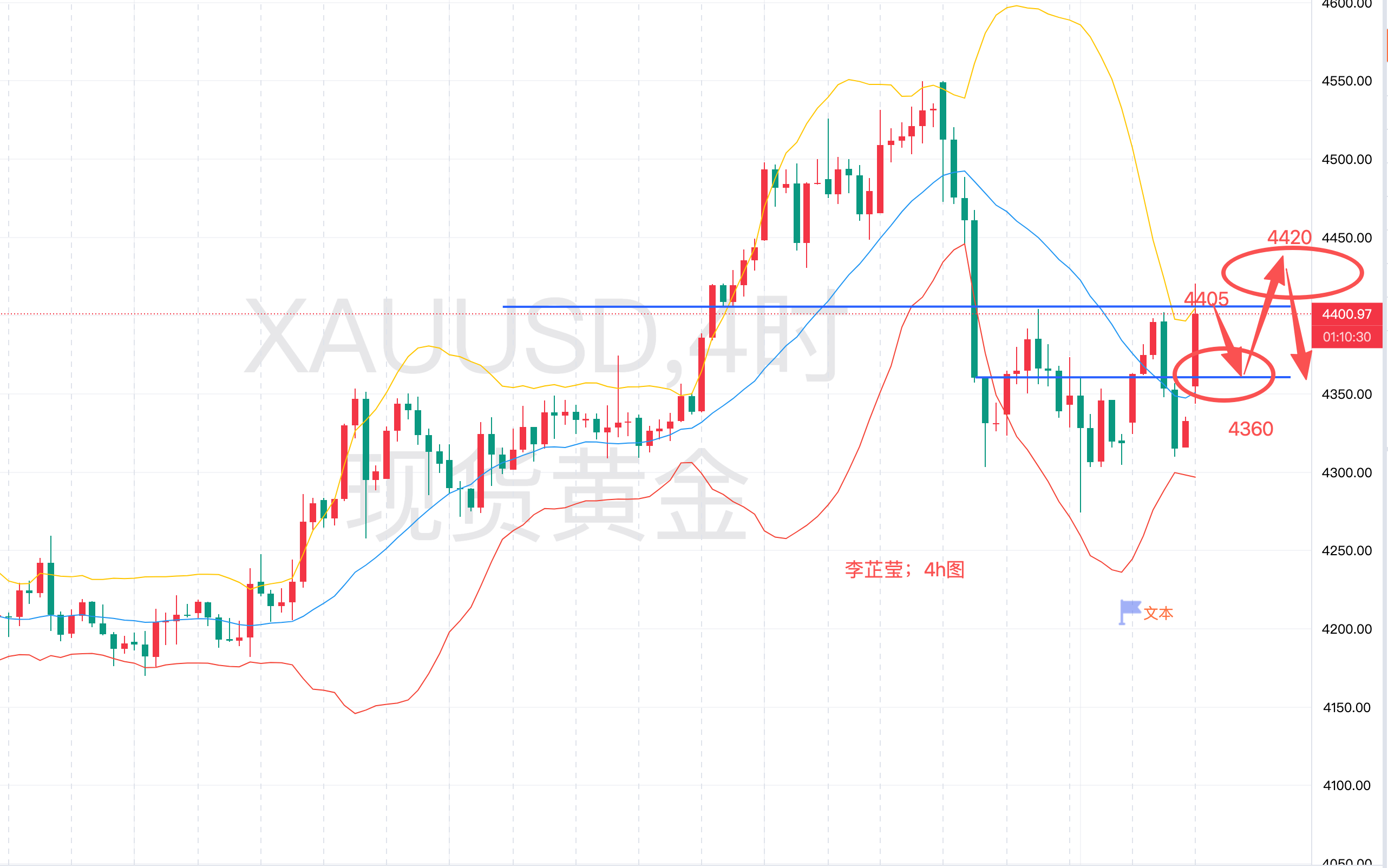 李芷莹1.4黄金如期冲击4400,周一金价有望高开低走?