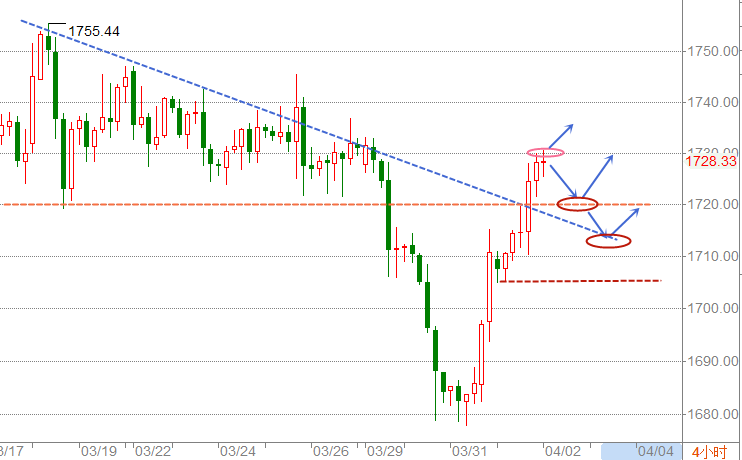 上方重点关注1738-1740一线阻力,下方短期重点关注1705-1700一线支撑;