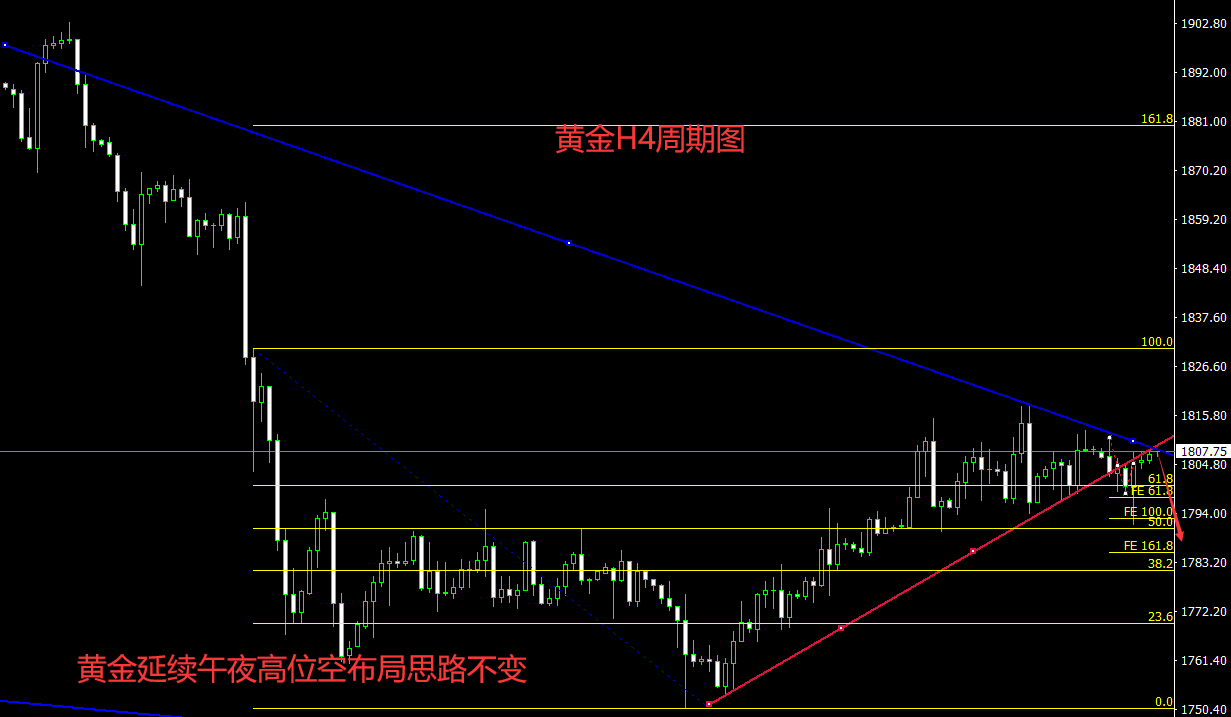 黄金早盘布局上遵循午夜高位空思路布局,暂时以1806附近空单持有并持续下看,午夜黄金下跌上涨都不太大,反弹的力度大于回撤这一点有点出乎意料,黄金整体运行轨迹偏向空头这是已知的,早盘触及趋势压制边沿开始小幅的震荡下探是明显的触压表现,今日延续这个思路黄金白盘高位空不变。小玲建议:黄金1808/07现价空,目标看到1798/95,损位1812