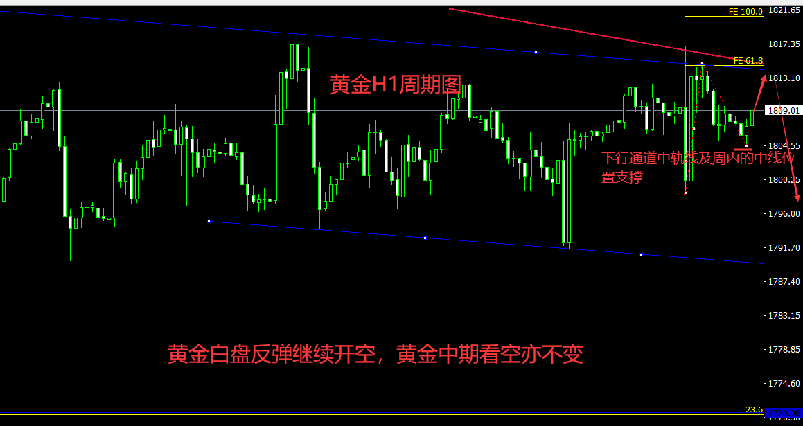 午夜给出的1814持仓计划早盘最低1804如期拿百点利润,早盘黄金依旧是触及H8周期中轨开启反弹,最高1810,白盘思路还是空