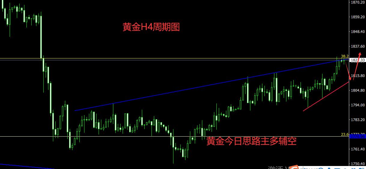 黄金早盘走出小幅回撤之后继续向上攀升,目前思路已经调整为低多开始布局,黄金午夜低多已经获利一段,白盘思路上仍需等待回撤,追多比较冒进风险也极大不建议大家如此执行,日线形态方面昨日收一根长实体的大阳线,大阳之下不言空因此黄金今日的主思路还是低多,黄金个周期内RSI指标出现了70附近的高位钝化情况,MACDH1周期上出现绿量钝化目前没有高位背离的条件,因此从整个走势来看小玲建议是1830/31区间做个短空,主思路还是维持低多。小玲建议:黄金1830/31附近空,目标看到1820/12,损位1836,回撤支撑1817/18附近低多,目标看到1830/33,损位1812