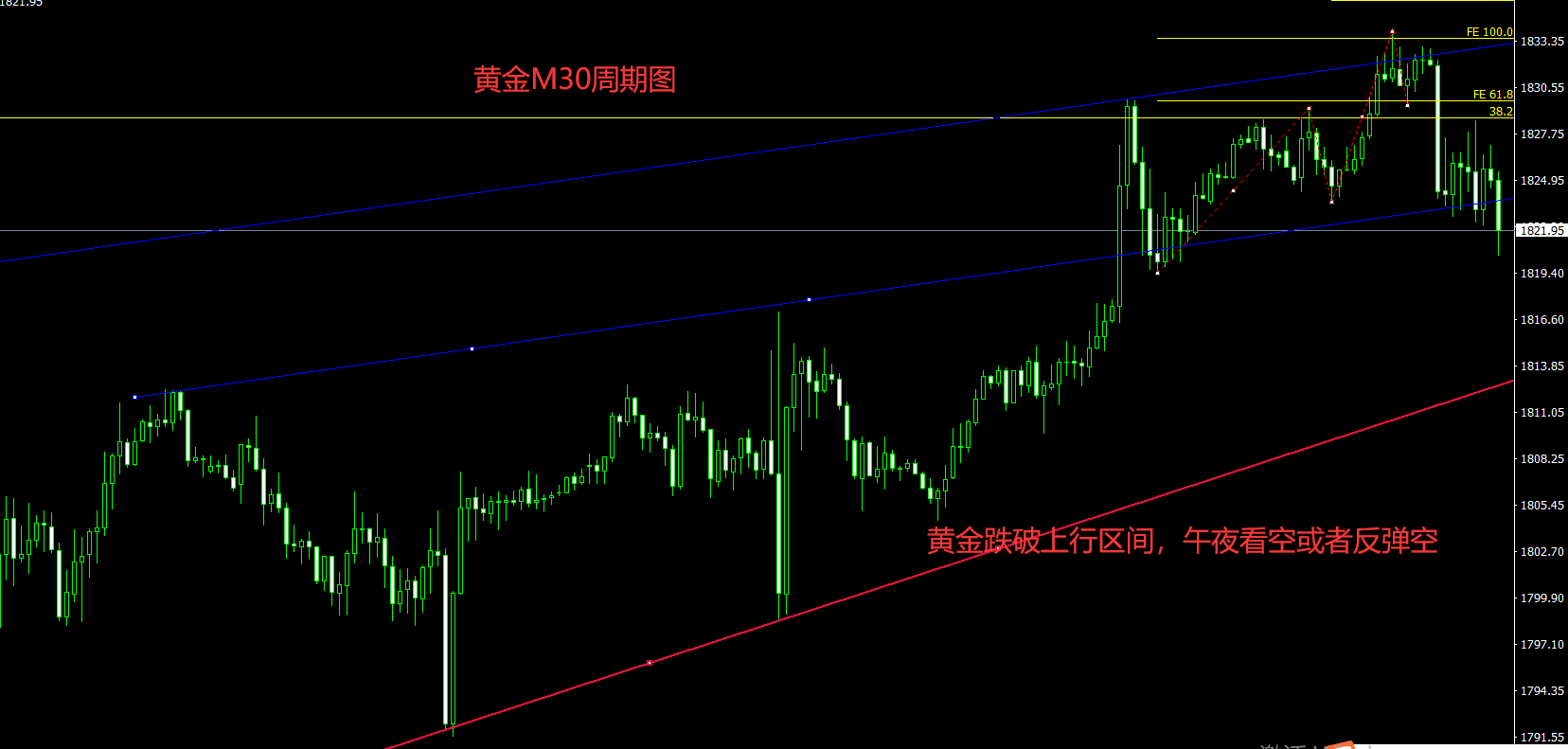 黄金晚间预计是要抄底的,但形态走势的让我退却了做低多的想法,目前而言H3周期上出现高位背驰情况,等待收量做进一步确认,今日RSI做同步放量的情况,午夜只有有一种形态那就是黄金续跌,点位上我认为黄金1826/27位置连续上探不破可以在这里开空,H1周期内的boll中轨迹H4周期的MA5联合压制。小玲建议:黄金1826/27附近空,目标看到1818/1815,损位1833