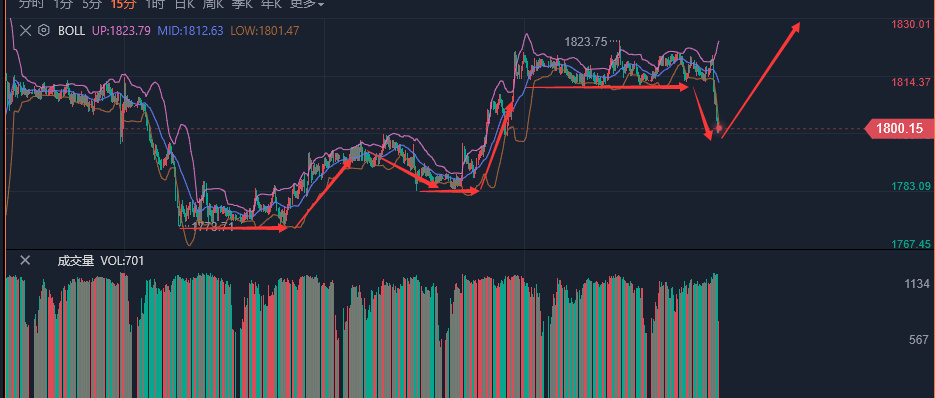 黄金策略:1800做多,目标1820,1830,止损4美金,跌破1798,直接追空看1780附近