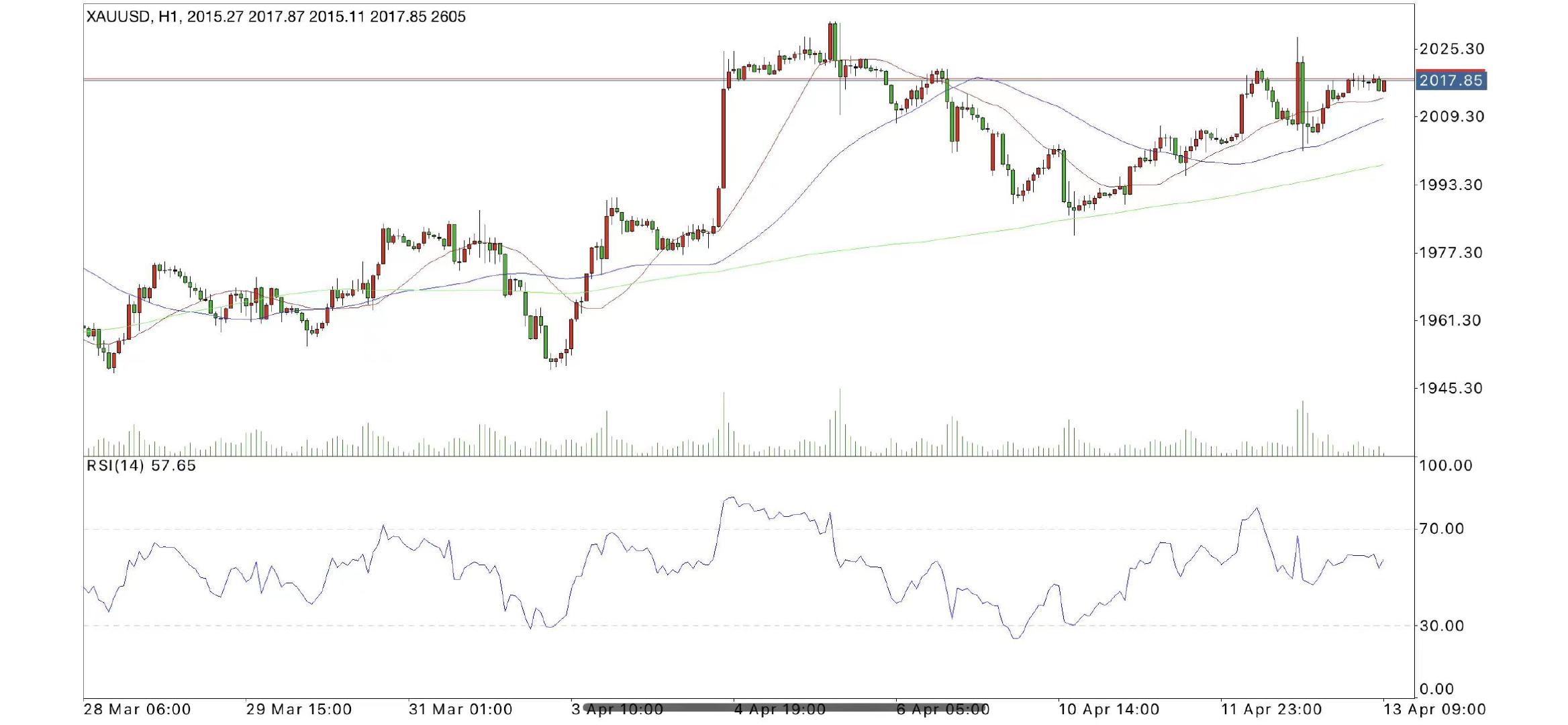 不过,MACD顶背离后粘合并有死叉趋势,红色柱赚绿,暗示上涨动能减弱,金价有震荡筑顶的可能性,布林线上轨趋于走平,金价也可能会在高位震荡后在选择进一步的方向,下方初步支撑在5日均线2006.54附近,然后是2000整数关口,10日均线支撑也在该位置附近,21日均线支撑1980.12附近,若失守该位置,则增加短线看空信号。