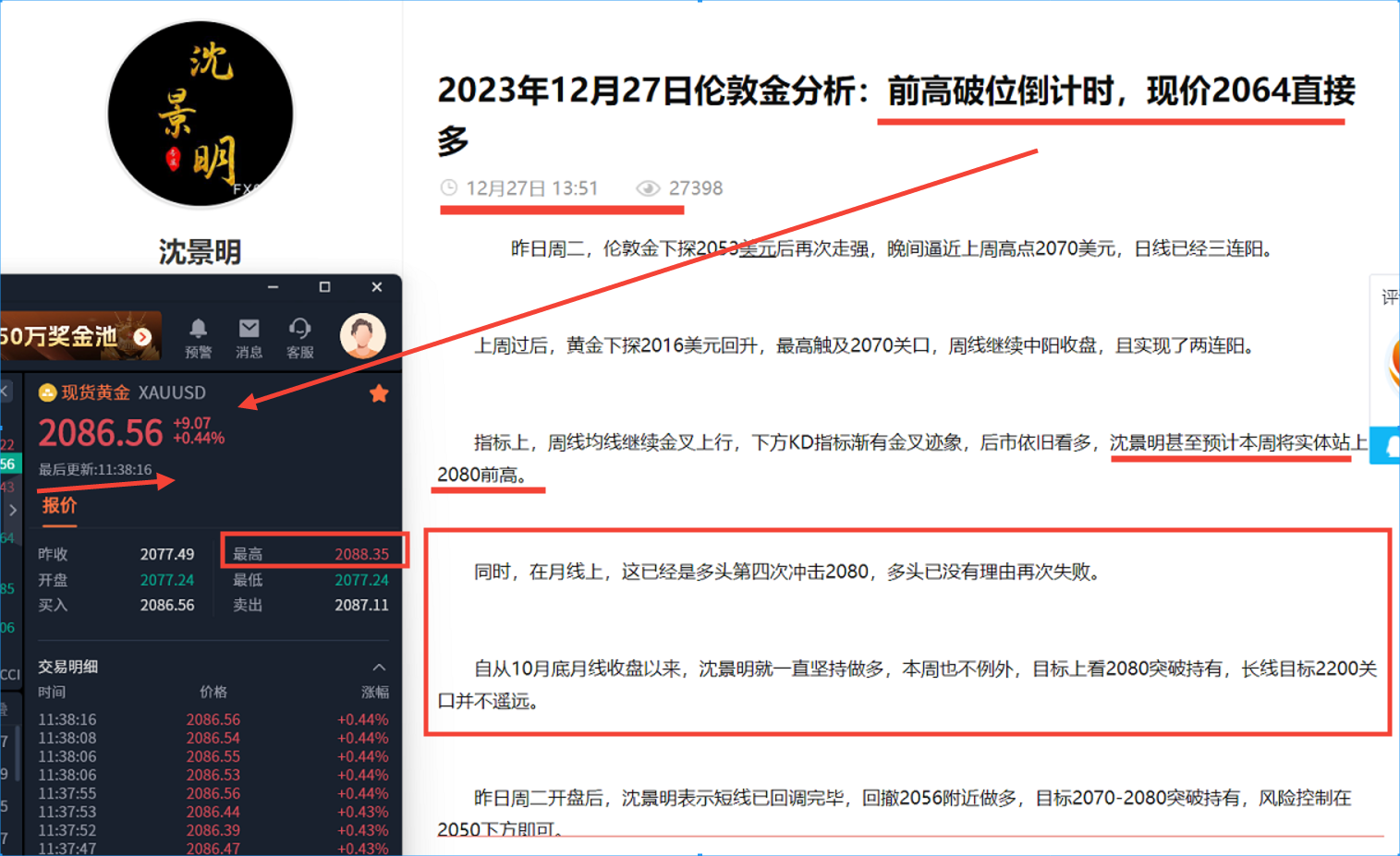 本周以来,沈景明还是一如既往的坚持做多,从2056、2064、2083三次做多。