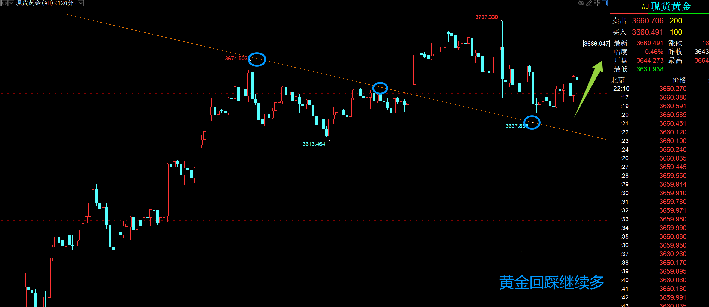 黄金本周一路低多一路止盈,从周天美盘到今天坚定提示大家做多,目前黄金破位3660,短期多头延续,美盘黄金回踩可以继续多,黄金大周期多头,短期今天并没有创新低,也是多头,美盘关注3658和3655关键位置,可以继续低多。
