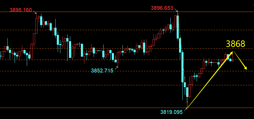 操作上,白盘建议3868下空,受政府停摆影响,留意晚间非农报告能否照常公布;