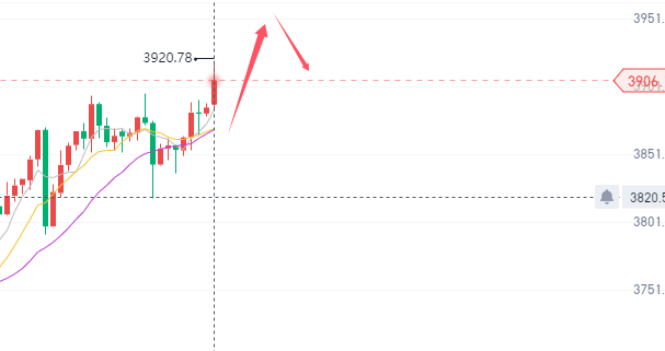 黄金今日开盘冲高回落,短期触及3920这里走了一波回撤,短期关注3900这里有效得失,下破关注3880支撑和3865支撑,站稳3900这里黄金还要测试逐步走高,估计还要去逐步向4000关口进发,早盘目前关注下这波冲高回落力度!回踩择机开多,冲高短空!