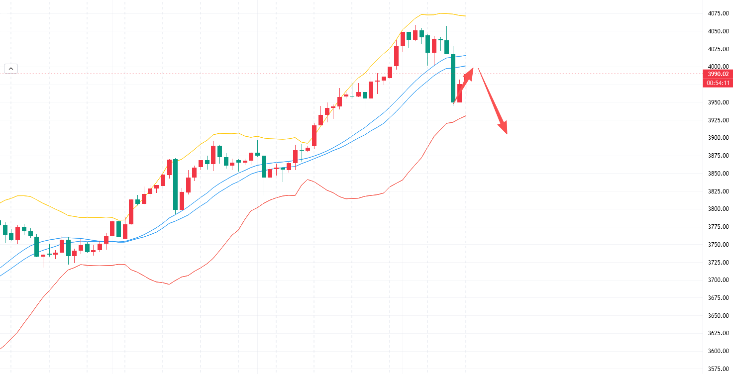 昨日技术面消息面双重加持,走了一波像样的回撤给到3945附近,今日看好惯性下跌,日内继续关注这里支撑作用和反弹修正力度,短期短线朋友关注4000附近回撤力度阻力作用,若早盘反弹站稳4005今日估计还要持续去4035上高位整理!下方支撑3950,触及附近多,下方强支撑3930附近,一旦下破,则本轮上升通道将下破,接下来就是进一步加速下行阶段。上方阻力4000-4005,如果行情弱势下跌,是不会给到特别理想的做空位置。今日周五需谨慎,防止走单边,行情随便波动一下都是很大的,所以大家务必带好安全带 !