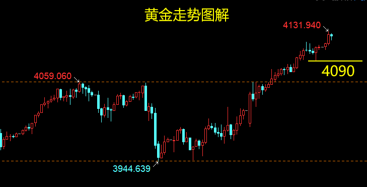 策略二:4090附近买入,保护4075,目标4136-4150;(备选)