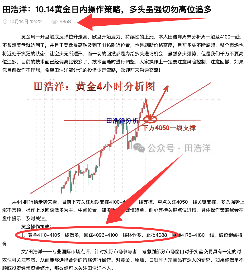 黄金近期不断问鼎新高,对于大家来讲已经不是稀奇事了,多头不断创新高的同时咱们就要提防黄金技术面回踩,昨天黄金中午我文章就告诫大家高位不要追多,担心大幅回撤的风险,果不其然黄金单边大幅回撤,从4179.6附近跌至4090一线,将近90美金的跌幅,相信关注田浩洋文章的朋友没有在高位追多,我们昨天在4105-10一线多,在4096-4100一线补仓多,止损4088,金价触及4090一线直接反弹,多头成功完美拿捏,文章全部记录在案,今天开盘黄金也是重复昨天的走势,但是千万不要高位追多,谨防技术面大幅回撤,等待回踩企稳我们再多单进场,这样才能保证万无一失,大家操作上一定要注意风险控制。如果你目前操作不理想,希望田浩洋能让你的投资少走弯路,欢迎前来沟通交流!