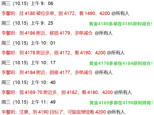 10.15 周三,黄金公开策略中提示4168做多,日内两次触及全部大涨拉升,拒绝马后炮!实盘中,早间先安排了4180破位多单,在4186获利减仓!又安排了4178多单,在4184获利减仓!而后同样安排了4169-70多单进场,顺利在4200止盈出局,整体拿下36点!目前已来到17连胜,公开布局从不遮掩,大家都见证!(因网站图片审核限制,更多实操详情可联系获取!)