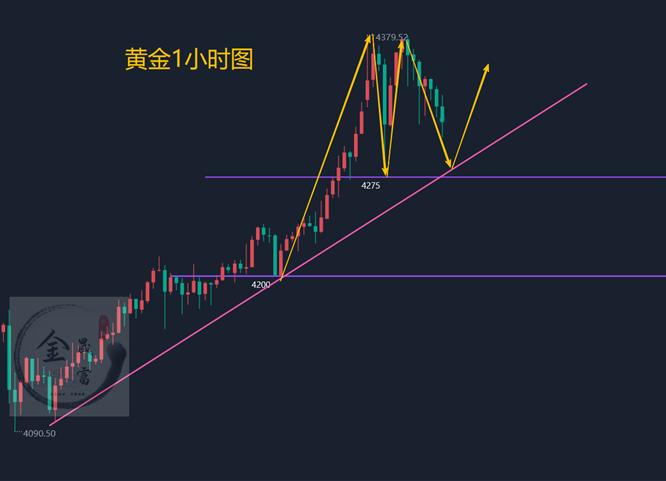 技术面来看;整体趋势还是多头,首要选项还是做多,但经过早盘的急跌急涨洗盘之后,日内的做多位置就要相对保守了,早盘急跌的低点4280附近已经确定了,如果今天出现暴跌破位4280,并且今天收盘收到4280下方,那就意味着短期很可能见顶,如果跌了,但是收盘又收回去,都不是有效的下跌。所以及时日内出现较大跌幅,靠近4280附近仍然可以二次多,其次,稍微激进的做多位置,只能放到欧盘时段,那就是4280——4285区域,触及可多,但有效的防守位置还是4270。如果关键位置4270下跌破位,下破的话那么这一波回调空间将会扩大4200附近。综合来看,今日黄金短线操作思路上金晟富建议回调做多为主,反弹做空为辅,上方短期重点关注4380-4400一线阻力,下方短期重点关注4280-4275一线支撑,各位朋友一定要跟上节奏。要控制好仓位及止损问题、严格设止损,切勿抗单操作。具体点位以盘中实时为主,欢迎前来体验,交流实时行情,进群关注实时单。