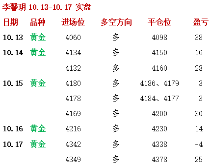 10.10 上周五,黄金早间公开安排了3990空单,在3970止盈出局!午后又公开安排了两次3972空单,一单3966减仓获利,一单最终在3954止盈离场!欧盘冲高4000-02安排了策略空单,短线在3991减仓获利!周尾收官四连空,共拿下45点!上周状态爆棚,11单全胜圆满拿下!