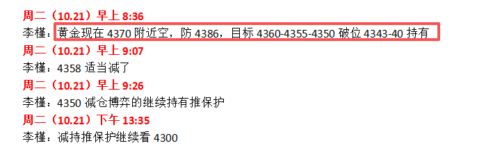 这个走势不太对劲!上周就开始预测的10月22日发生转变,难道提前到来?我们早盘实战接近日内最高点的4370空还持有在,目前4320已经50美金落袋了。二次摸高未破,有望构筑小双顶,欧盘短期关注4335分水。今日谨慎多了,白银昨天并没有上探新高,但是黄金却触及了前高,现在黄金从前高直接下来。本轮预测不是空穴来风,大家宁可信其有,不可信其无。总之这两天密切注意追多风险了,我们要谨防大回调。