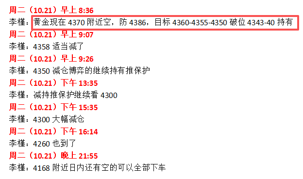 我们半个月前就开始公开提示22日可能会有转机,如今提前兑现,这预判估计在全网独此一家。早盘实战也是4370直接接近日内高点的空,大家随便查验!观摩公开大家也可以随便登录!我们早盘标题也直接说明黄金今日有重大变化!李槿从不马后炮!黄金日日涨,调整本就在预期之内。今明两日,建议彻底摒弃“无脑多”的思路:多头机会未来有很多,即便错过也不可惜,但如果此时执着追多,一旦被套高位,后续解将会异常艰难。