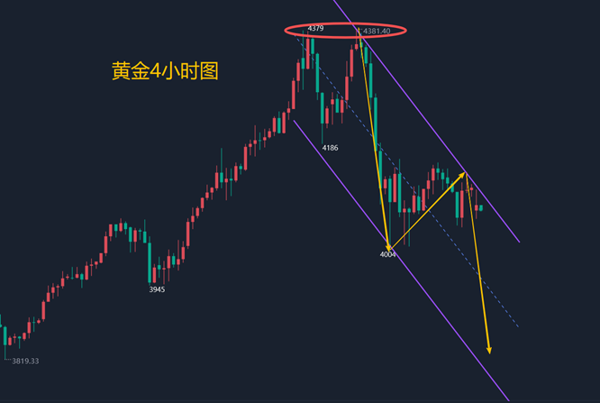 1小时图中,黄金上周在4380形成双顶回落之后,目前行情整体处于底部震荡整理,暂时结构上偏空一些, 1小时短线开始走三角形收敛形态的调整方式,那么黄金接下来调整还可能延续,目前整体还是偏空的,今日上方阻力4100-4115,下方4004一线支撑,若跌破4000美元关口,将有望开启下行至3800美元的走势,该位正是此前上行三角形形态测算出的目标位。 综合来看,今日黄金短线操作思路上金晟富建议反弹做空为主,回调做多为辅,上方短期重点关注4160-4185一线阻力,下方短期重点关注4010-4005一线支撑,各位朋友一定要跟上节奏。要控制好仓位及止损问题、严格设止损,切勿抗单操作。具体点位以盘中实时为主,欢迎前来体验,交流实时行情,进群关注实时单。