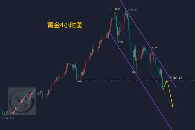 从亚盘跌到美盘,整日都处于下跌之中,没有反弹和上涨,那就只能顺势做空。今天的行情比昨天发展更快,中午就完成了1小时矩形的下破,同时也跌破了前期3945美元的支撑,目前价格位于3900美元附近,单边下跌趋势之下在小时线级别是没有回调出现的,这种行情你只能盯着5分钟和15分钟的布林带中轨做追空操作,破上去就止损,看向3800美元的最终目标,至于多单还是不要轻易尝试,极端行情极端对待。短线来讲,行情陷入极端下跌趋势,没有回调出现,可依靠5分及15分图布林带中轨追空,如意外出现反弹,则依靠1小时顶底转换位3945美元阻力再次布局空单,综合来看,今日黄金短线操作思路上金晟富建议反弹做空为主,回调做多为辅,上方短期重点关注4160-4185一线阻力,下方短期重点关注4010-4005一线支撑,各位朋友一定要跟上节奏。要控制好仓位及止损问题、严格设止损,切勿抗单操作。具体点位以盘中实时为主,欢迎前来体验,交流实时行情,进群关注实时单。