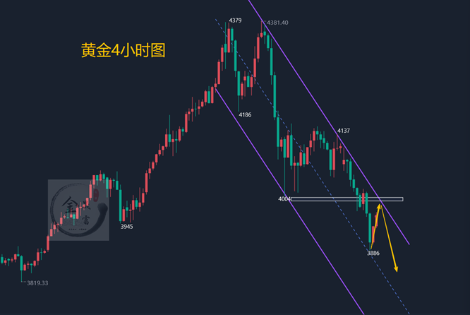 黄金技术面分析:今日黄金整个亚欧盘走势如同钝刀子割肉,小阴连绵向下毫无反抗之力,日内跌幅近110美金。黄金最低跌至3886一线,这一点是没想到今天会有这么大跌幅的,目前来说,黄金小时线依旧是空头排列,每次探底回升最终都是下跌,多次之后只能说都是诱多,今晚的话依旧还是继续看空即可;套在半山腰的都在等价格反弹!跟随的朋友应该都了解日内行情,美盘反弹高空继续参与即可,切记不可追空!