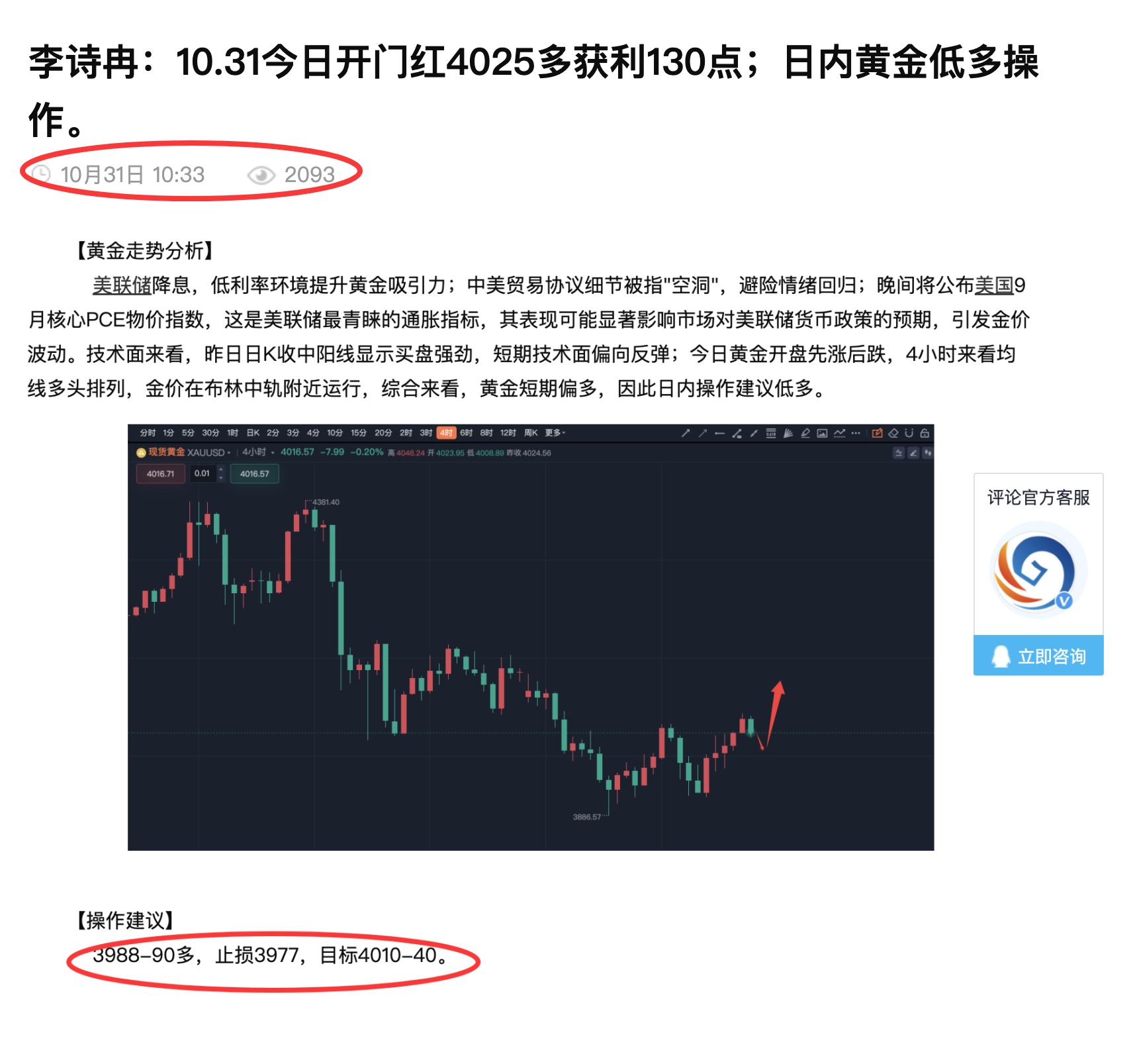 周五全网公开3990多点位精准实盘3波小赚;早间黄金回落实盘在4025提示多,上涨至4038提示离场,这单获利130点;午后实盘在4015提示空,最终在4024止损离场;第三波欧盘实盘在4023空,在4019小赚40点提示离场;早间全网公开3988-90多,点位精准,黄金如期回落至3989反弹,跟上的朋友大赚。