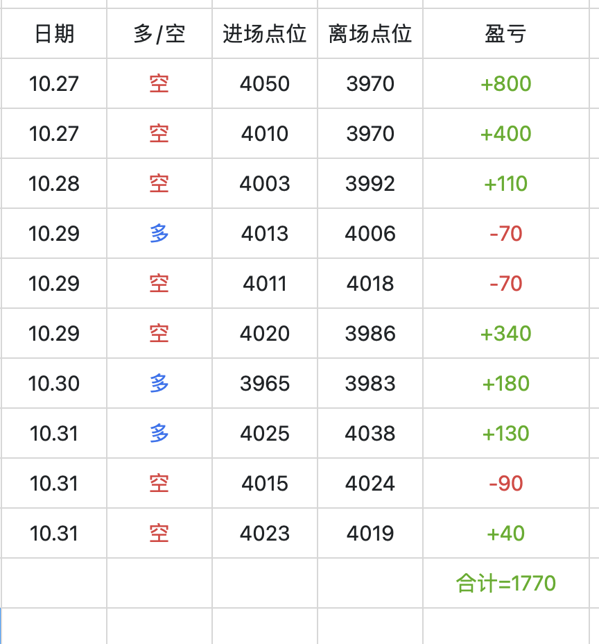 本周10.27-31实盘10单止盈7单大赚1770点;诗冉老师给的数据统计都来自真实的实盘操作结果,绝不弄虚作假,不清楚的朋友可以翻看我前面的文章或者直接获取诗冉老师的联系方式查看。发文给策略次数有限,需要跟上实盘的直接查看主页获取诗冉老师联系方式即可,每周实盘稳健盈利,每天盈利透明公开真实不作假,每天1-5单不等,选择大于努力!