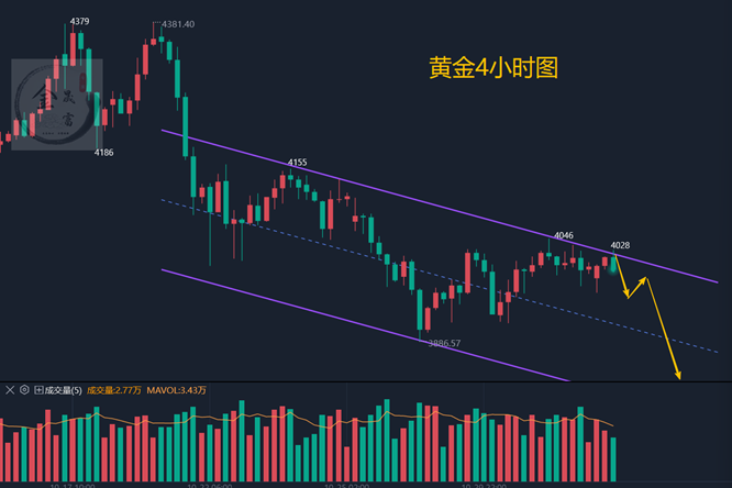 策略一:黄金反弹4025-4028附近分批做空(买跌)十分之二仓位,止损8个点,目标3990-3960附近,破位看3915一线;(策略具有时效性,更多实施布局建议在钉钉实盘学员内部公布)