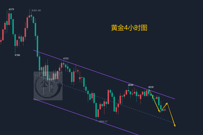 黄金技术面分析:黄金昨日横盘滞涨,频频承压在4000关口一线,最终在晚间最后一波走突破测试失败之后迎来暴跌,走势上符合我们看空的预期,至于行情下跌破位属于正常行情,毕竟突破3960一线之后,行情必定会迎来加速下破,昨晚也是最终下跌至3928一线,日线收大阴结尾,日线报收光头光脚中等阴柱,打破了近期反弹的箱体震荡走势,短期承压继续看下行!