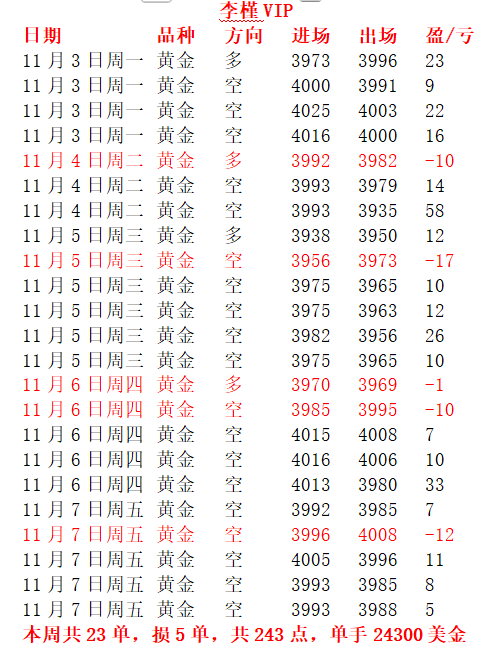 上周一实战四连胜收尾!其中欧盘4025空,周末有公开给出4022附近空,我们实时也有给出提示,行情最低下探3993附近,日内收获满满。