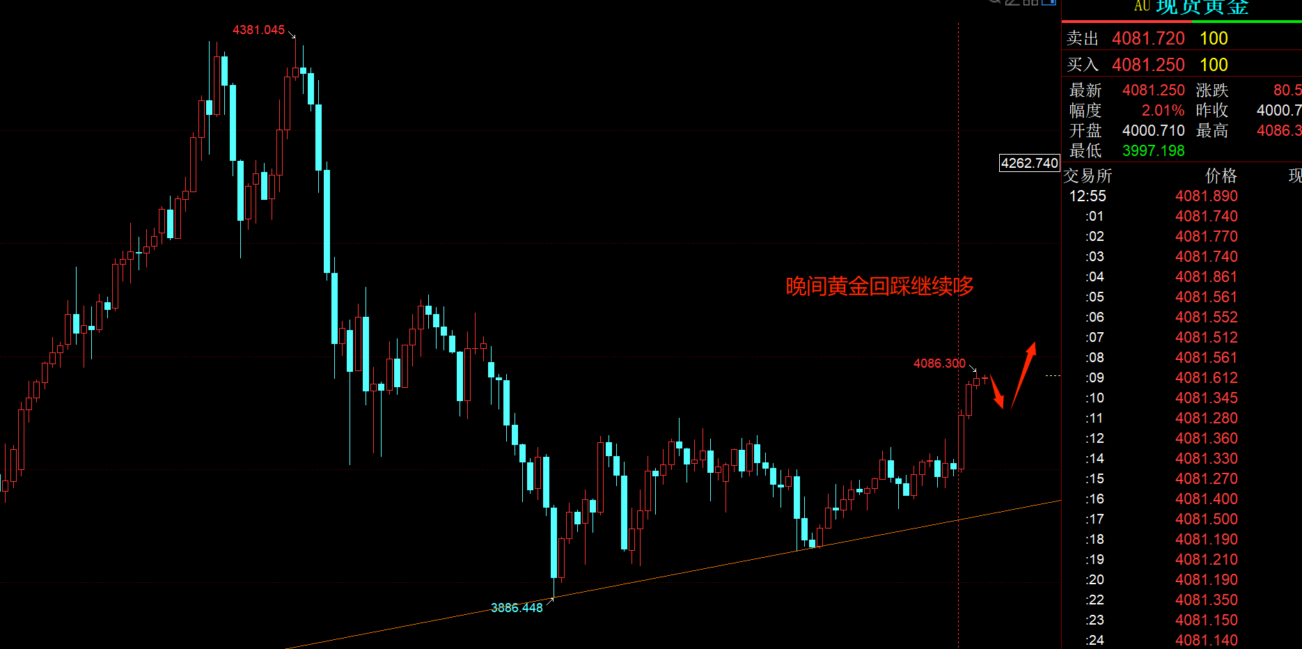 黄金上周一路提示大家做哆,提示的单子,有跟上的朋友一路盈利,今天黄金终于大涨,破位新高,晚间黄金回踩继续哆,欧盘黄金一直盘整,到美盘等待下跌,下方关注4055的支撑位,回落可以分批做哆黄金,继续看到4090-4130.