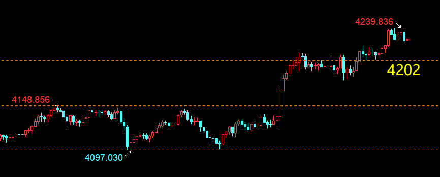 策略二:4202附近买入,保护4192,目标4240;(备选)