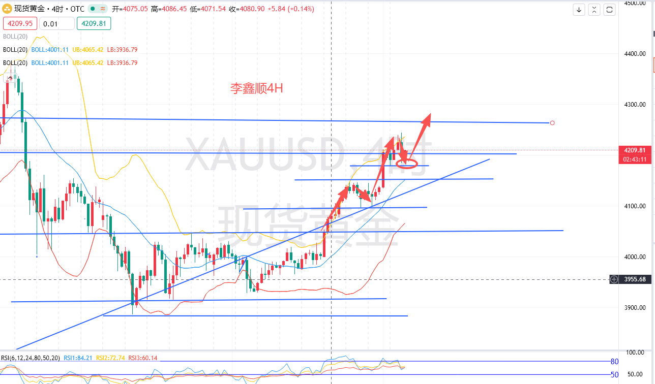技术上,黄金美盘下跌调整最低至4180上,4200多损了,4187-90仍然接回,低点不断抬高4150-4180, 调整蓄势后下个目标则是奔着4270-4300区域去的,操作上仍然是主多辅空,对于中长线而言4180上方开多尾仓仍然是可以持续上看的,4180关口一但失守调整将会进一步加深至中期关键多空分水岭4150一线,短线而言可以继续持续价格南下看待,反之不破不立情况下4180之上仍保持中长线思路看待。总体而言,依托4180-4150保持主多思路辅空进行即可,上方切勿猜测顶部,即便是做空可以追随4180的破位空单,还有上方4280-4300关口进行15-20个点的短空利润,其它位置一律多看少动,主要保持空头不贪,多头一定要贪的思路!周一以来目前只损一单。