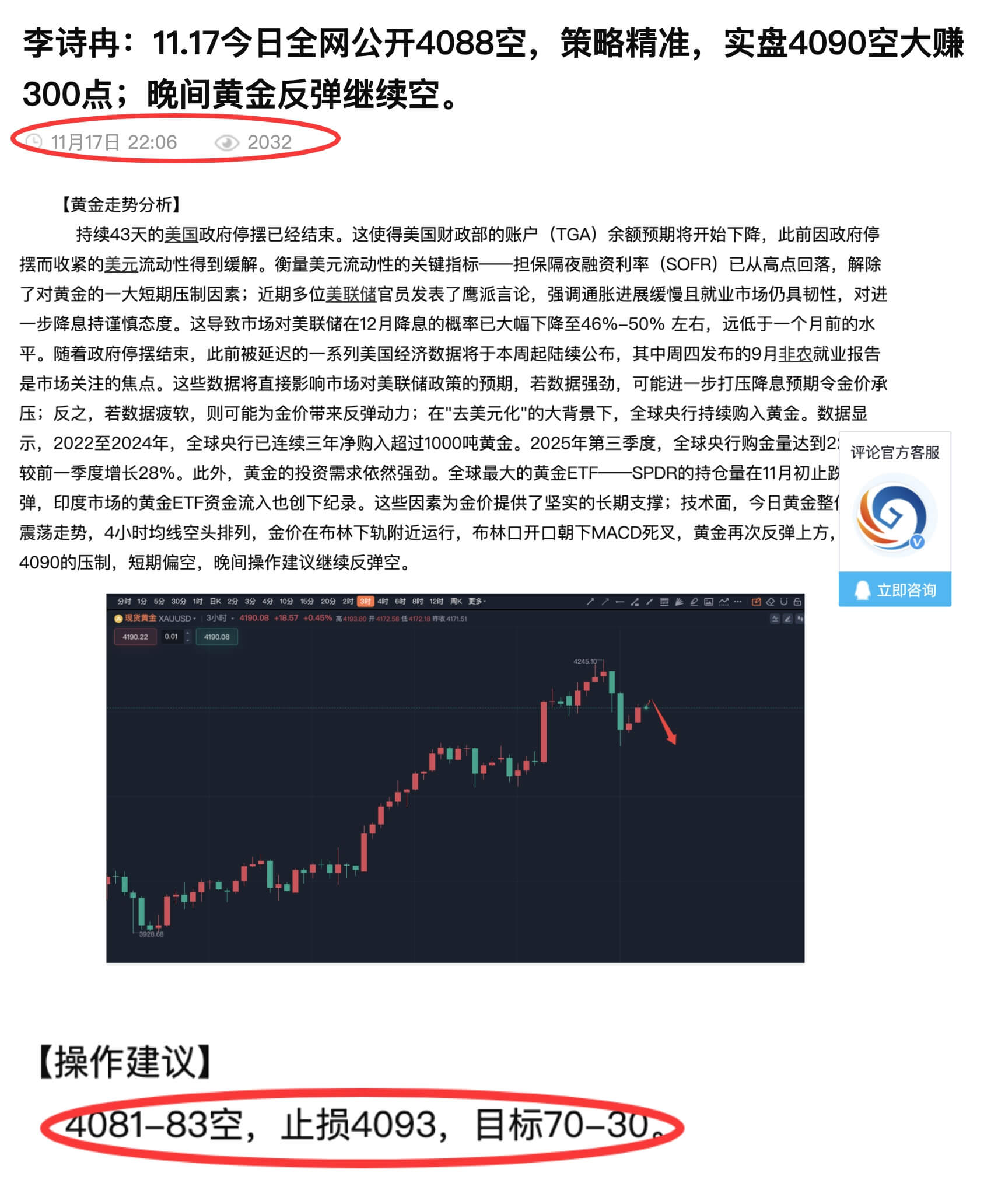 昨日全网公开4088、8081空,策略精准,实盘4090空大赚300点;早间实盘在4090提示空,大跌至4060提示离场,这单获利300点;发文给策略次数有限,需要获取更及时的策略请前往主页获取诗冉老师联系方式即可,选择大于努力。