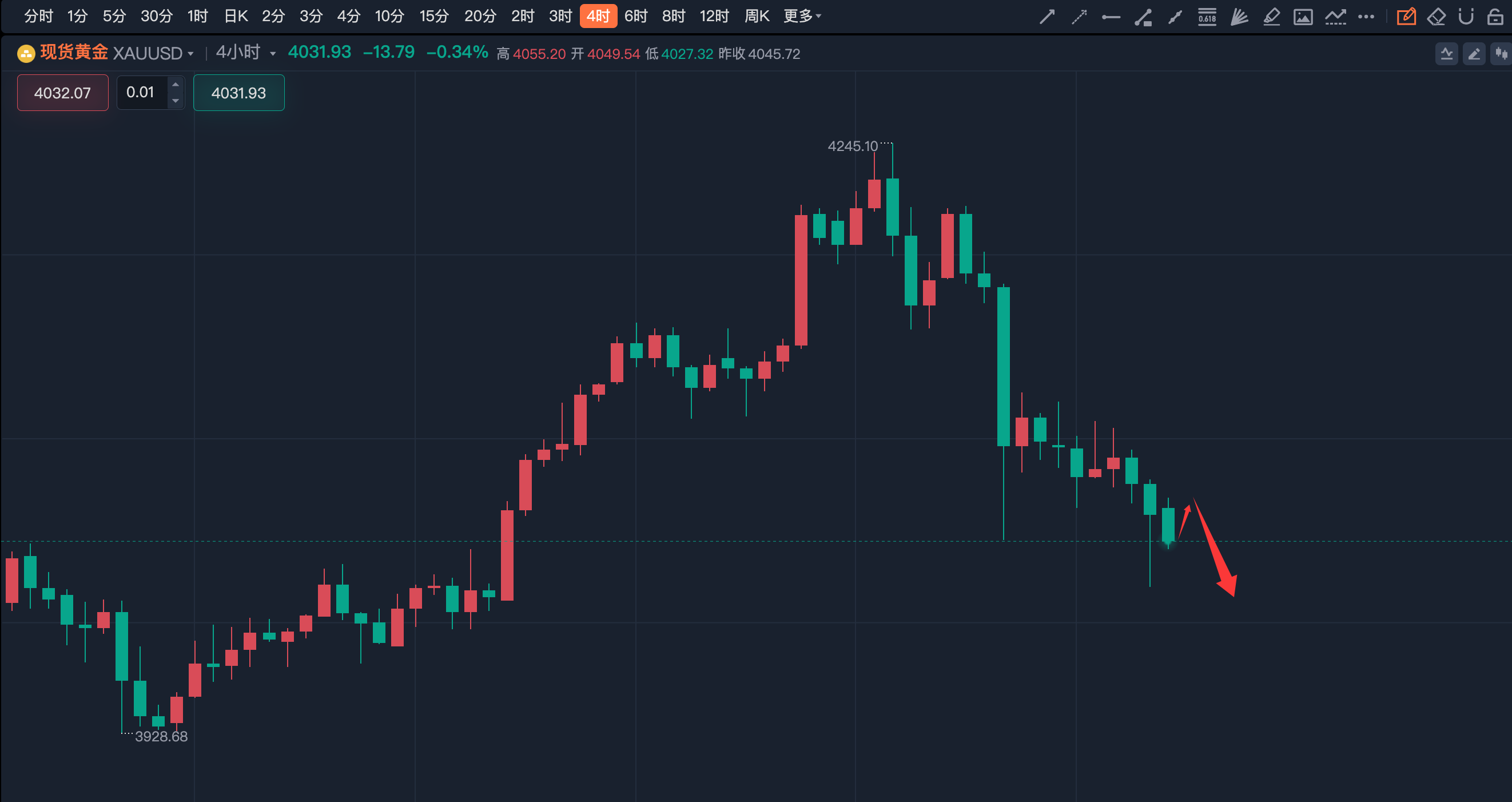4040-43空,止损4055,目标4030-00。