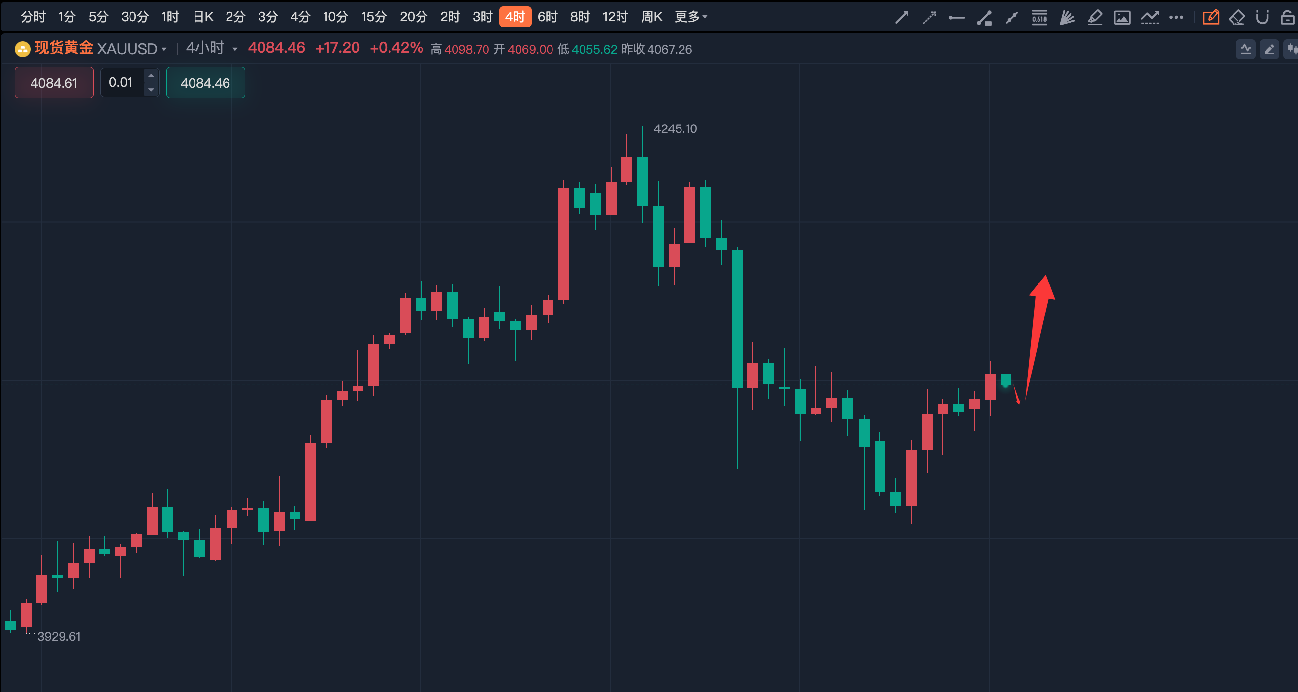数据显示美国续请失业金人数处于两个月高位,表明就业市场可能降温,这提振了市场对美联储降息的预期,利好黄金;全球股市(尤其是美gu)表现疲软,推动了投资者的避险情绪,资金流入黄金;地缘政治不确定性以及各国央行持续的购金行为,为金价提供了坚实的中长期支撑;当日美元保持坚挺,使得以美元计价的黄金对其他货币持有者来说更为昂贵,抑制了需求;市场对美联储在12月降息的概率预测已从一个月前的90%大幅降至约50%,这削弱了黄金的短期吸引力;市场高度关注因政府停摆而延迟发布的美国9月非农就业报告和美联储10月货币政策会议纪要。这些信息将为美联储的利率路径提供更清晰的指引;今日黄金呈现震荡上涨的走势,4小时均线金叉,MACD金叉,金价突破布林中轨向上,黄金目前来看多头占据上风,晚间操作建议回踩继续多。