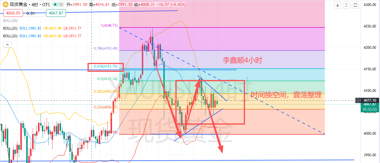 黄金技术上,也是再次完美拿下几十个点的波段,4100空20个-30点空间级别短线也是随便拿, 基本面配合技术上整体大格局就是看空不变,即便是震荡整理价格位于4147-50下方主空辅多去操作仍是主基调,随着时间的推移4小时布林走平收口,妥妥的技术修正需求蓄势为近一步突破做准备,非农超预期利空情况下也给多头形成很大的压制,所以多头只能当做逆势反弹去对待,对于做多的朋友尽量以短线为主,空仍是目前的方向趋势。(对行情把握不好的朋友可以考虑加入鑫顺实盘,感受现价单,联系方式右上角主页)