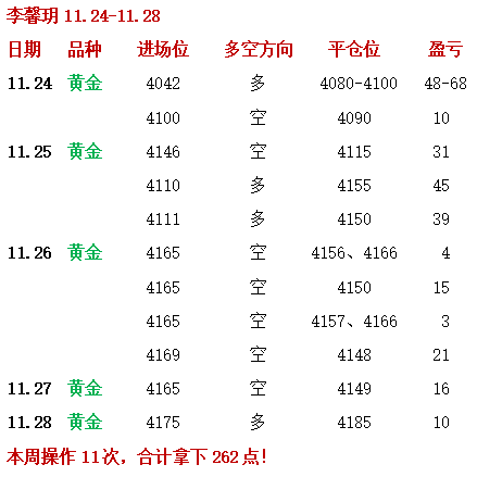 11.27 周四,策略提示震荡思路依旧正确,欧盘前公开安排了4167-65空单,顺利在4149止盈出局,收获18点利润!现价单公开呈现,杜绝弄虚作假,全网见证!