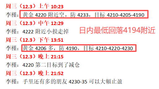昨日超神回落多拿下四连胜!早盘公开给出的思路回落4200多,触及也有反弹至少十五美金以上。备用多给出4175多,行情走强没有给到,回落4181直接上去了,实战也有抓住机会4185直接干多,4210大幅下车,最高触及4230