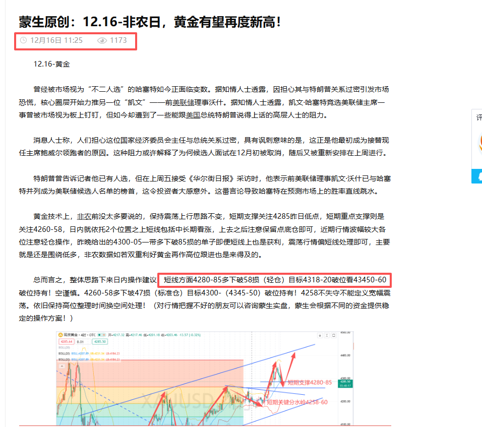 黄金技术上,低多主基调依旧稳妥获利拿下,短期多头关键分水岭依旧关注4258前低位置,一旦下破要注意深调风险,毕竟非农数据也只能算是喜忧参半并没有直接双双利多,配合技术上就是震荡上行节奏,操作上依托4258上方反复多即可,空单的话尽量避免依旧顺势而为低多。当前价格还是位于4258-4355区间内内震荡整理(时间换空间)总体而言,数据再次提振了震荡上行概率,依托二次起涨点4290附近多4280补,下破70损(轻仓)进行,备用策略4260-58多下破4244损(标准仓)。目标短线而言看4300破位看4345-50,留仓中长线持有!晚间站稳4290上方的话,那么接下来时间上新高就不远了,望大家能耐心等待新高!(更多现价单加入蒙生实盘给出,根据大家资金大小合理安排盈利方案最大化!联系方式右上角)