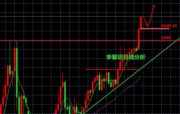 操作建议:黄金4450-45附近多,损4440,看4485、4530!如果洗盘再根据力度4436、4412接多!