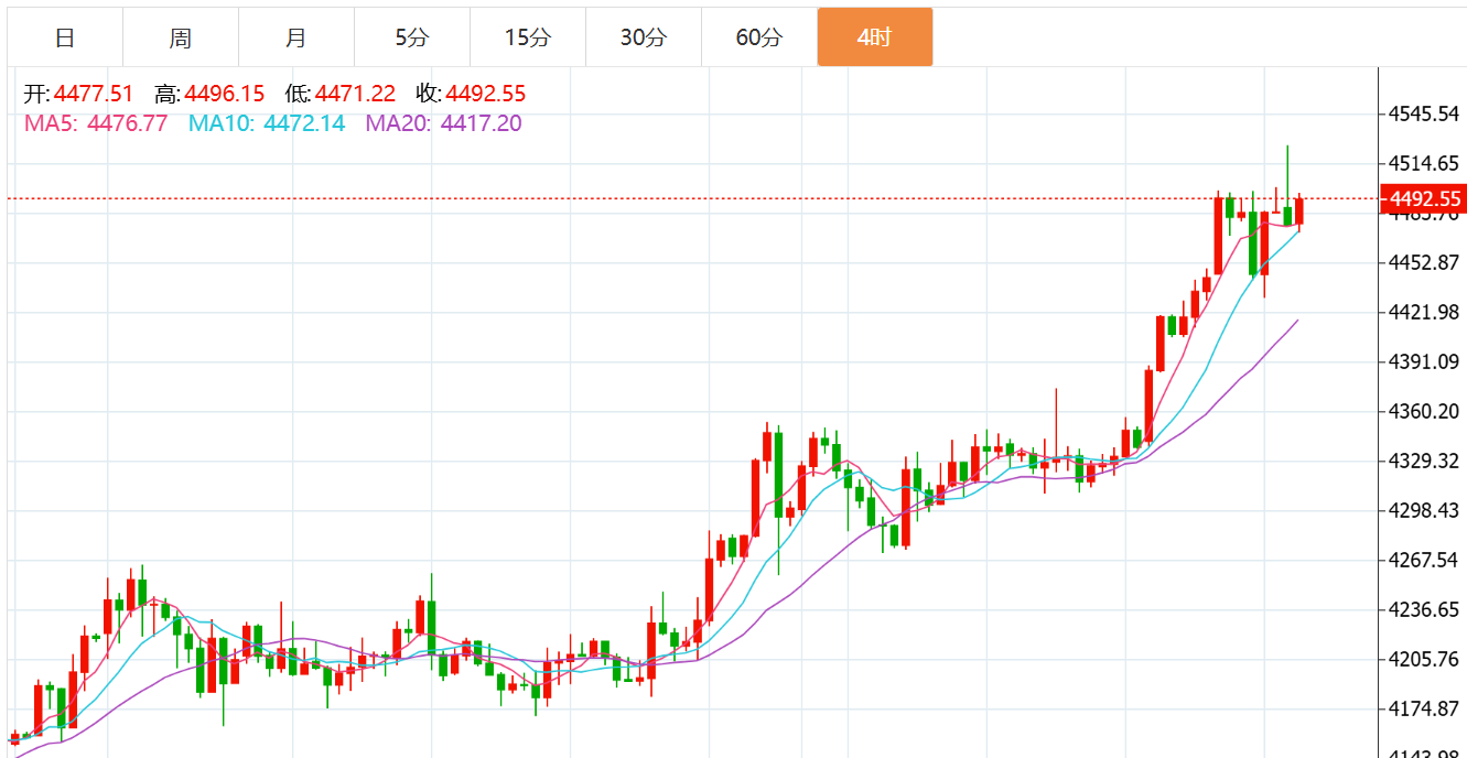 黄金技术面分析:从黄金走势看,暂无见顶迹象:14日相对强弱指数(RSI)刚进入超买区间,这在健康上升趋势中属正常现象。季节性支撑依旧显著——12月日均回报率显示,圣诞前后交易时段黄金上涨倾向明确且概率较高,为获利了结潮来临前的进一步上行留出空间。从4小时图观察,金价稳稳运行在100周期指数移动均线之上,显示多头趋势保持完好;布林带开口扩大,表明波动率正在上升,趋势行情特征明显。RSI指标位于中轴上方,虽未进入极端超买,但已处于偏强区间,暗示短线追高需保持谨慎。周二早间黄金已完成关键突破到达4500关口,且日线高位收线,表明强势格局仍在延续,今日大概率延续上涨走势,操作上仍可择机低多布局。昨日的上升过程中,空头几乎没有获得像样的反击机会,而要维持强势形态,通常不会出现深度回撤。综合来看,黄金今日短线操作思路上贺博生建议以回调做多为主,反弹高空为辅,上方短期重点关注4510-4530一线阻力,下方短期重点关注4460-4440一线支撑。