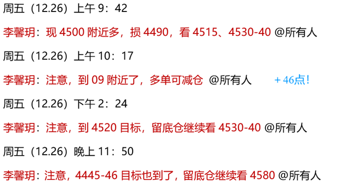 12.26 周五,虽然白天有事未更新策略,但日内公开安排的4500多单,坚定持有,利润没有落下,晚间已上涨至4546获利大赚46点!看涨思路完全正确,公开操作做好跟随就是捡钱,全网见证!