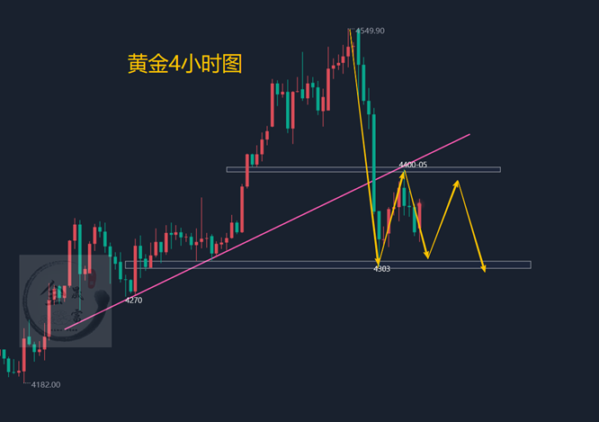 日内首要关注昨日高点4404附近的阻力有效性。下方支撑方面,周一暴跌低点4303恰好触及当时的日线短周期均线MA20,当前MA20位于4315附近,短线需优先关注该区域支撑强度,其次重点跟踪4303的得失情况。若行情有效跌破4303,则市场将延续下行趋势。整体上金价在4小时下降趋势阻力线下方运行!日内反弹只是一个回测的动作,反弹不破阻力将会继续下跌,方向跌势将会延续!空头拐点自高点转向下行之后,当前空头趋势仍在向下延伸,也就是说,在空头抵达关键节点多头筑底之前,反弹空仍是主节奏!综合来看,金晟富黄金短线操作思路上金晟富建议反弹做空为主,回调做多为辅,上方短期重点关注4382-4405一线阻力,下方短期重点关注4300-4280一线支撑,各位朋友一定要跟上节奏。要控制好仓位及止损问题、严格设止损,切勿抗单操作。具体点位以盘中实时为主,欢迎前来体验,交流实时行情,进群关注实时单。