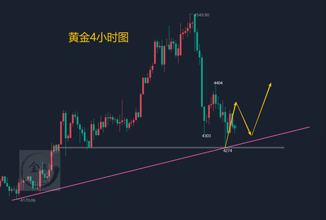 从黄金4小时图来看,经过昨晚美盘时段的暴跌之后,头部形态一下子就已经浮现,不过考虑到长期趋势还是多方占优,所以只要没有进一步打开下方的空间,那么就不代表空方卷土重来。现阶段短期均线组纷纷拐头向下,后市可能会施加明显的压力,日内的重要分水岭会在4400大关附近,而MACD指标下破零轴,因此操作方面建议保持回踩看涨更为稳健。综合来看,黄金短线操作思路上金晟富建议回调做多为主,反弹做空为辅,上方短期重点关注4375-4380一线阻力,下方短期重点关注4300-4280一线支撑,各位朋友一定要跟上节奏。要控制好仓位及止损问题、严格设止损,切勿抗单操作。具体点位以盘中实时为主,欢迎前来体验,交流实时行情,进群关注实时单。