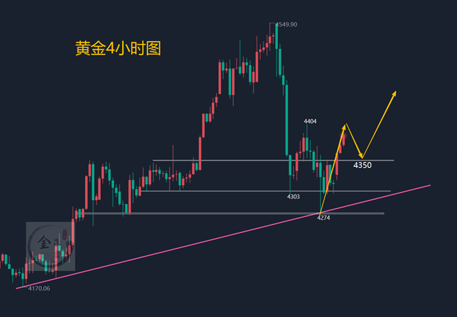 策略二:黄金回调4350-4355附近分批做多(买涨)十分之二仓位,止损8个点,目标4380-4400附近,破位看4430一线;(策略具有时效性,更多实施布局建议在钉钉实盘学员内部公布)