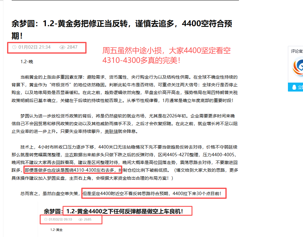 1.2-坚定4400附近空不看反转思路符合预期,4400拉下来几十个点,然后晚间思路告诫大家多一定要等待4310-4300区域多,也是帮大家规避了中间回踩看涨亏损。