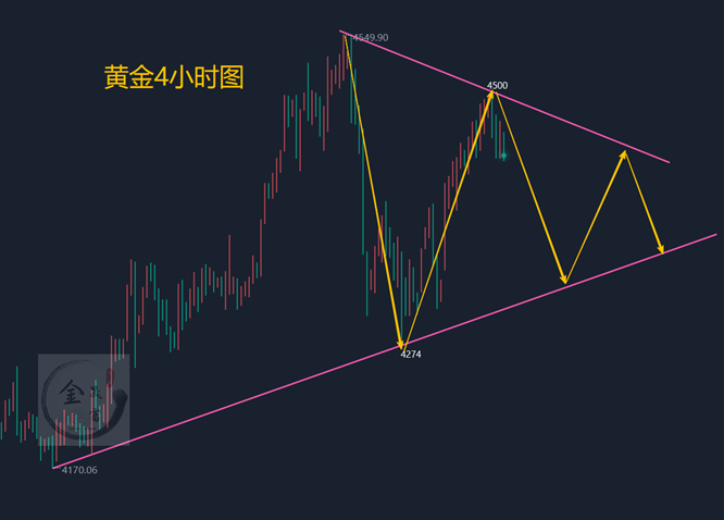 先看黄金小时图走势,黄金从4309一路单边拉升冲到4500,那波上涨多头简直是势如破竹,阳线一根接一根,回调都没给多少机会。但到了4500这个高位,情况直接反转,空头突然发力,价格直线砸到4423,急跌的力度大家也能看得明明白白。上方阻力先看4470-4480区间,这是前期的高点压力位,要是价格冲不过去,大概率会再次回落;下方支撑就是4423的昨日低点,一旦跌破这个位置,黄金可能会继续下探4400关口。如果4400心理关口破位或将回补周二跳空高开的缺口4330附近;综合来看,今日黄金短线操作思路上金晟富建议反弹做空为主,回调做多为辅,上方短期重点关注4470-4480一线阻力,下方短期重点关注4330-4335一线支撑,各位朋友一定要跟上节奏。要控制好仓位及止损问题、严格设止损,切勿抗单操作。具体点位以盘中实时为主,欢迎前来体验,交流实时行情,进群关注实时单。