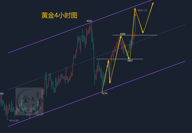 从技术面来看,在刷新高点后,日线连续大阳,有破位布林上轨或者极强单边的可能,继续走高的话,上方虽然不猜顶,但短期目标看到4680,4800,不过在市场极其不稳定,如果冲高回落,日线反收阴,也有可能会出现高位震荡表现,日线下方支撑在4550,4480,因此,本周技术面需要关注高低点位存在的意义。对于短期而言,今天开盘黄金冲高,最高4600,不过目前黄金出现了回落,就需要关注回来的延续性,如果回落力度过大,4小时周期形成光头k线,那么,也有强势多头一日游的可能性,所以,现在的行情不太好说,也不肯定本周是多头的延续,还是冲高的昙花一现。对于我们而言,保持看涨趋势,做回落多的稳定交易才是上策。小时线上若欧盘回撤到位,可以继续尝试短多一次,毕竟在这极速上涨的行情中,不要轻易言顶。牛市趋势就做跟随,而不是逆势操作!综合来看,今日黄金短线操作思路上金晟富建议回调做多为主,反弹做空为辅,上方短期重点关注4602-4610一线阻力,下方短期重点关注4560-4550一线支撑,各位朋友一定要跟上节奏。要控制好仓位及止损问题、严格设止损,切勿抗单操作。具体点位以盘中实时为主,欢迎前来体验,交流实时行情,进群关注实时单。