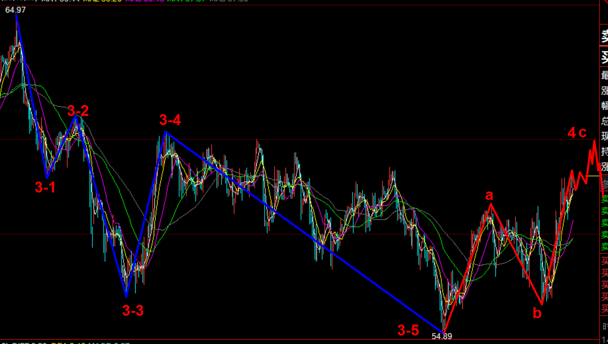 但是目前的行情还在我们的数浪结构之中,所以后续一旦行情继续上涨破了主跌3浪的起点,那么后续的数浪结构可能需要重新调整一下,因为目前行情已经触及60美元了,在我们前期的数浪的主跌3浪从64.97美元跌到54.89美元,跌幅为10.08美元,目前行情虽然上涨厉害但还是在我们数浪的结构之中,只要在短期行情不破主跌3浪64.97美元的起点,目前的走的4浪修正是一个比较完整的abc平台型走势,我们还是可以在数浪结构里面在压力位附近尝试小止损做空的,但是从目前的行情走势来看,是多要做空也要做空,就看行情是在亚欧盘先跌还是先上涨,当然也要提防单边行情,所以带上止损保护交易是明智之举,今天的行情我们采取高抛低吸的交易方式,如下。